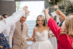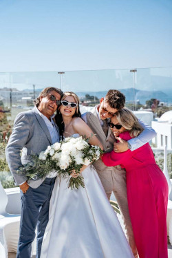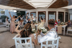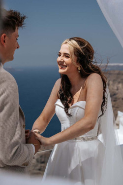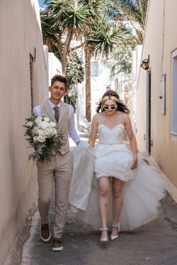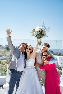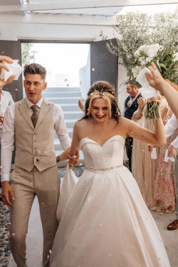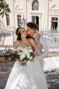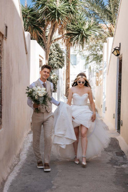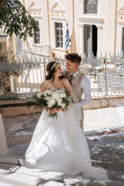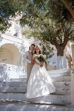 Siobhan’s wedding was a truly exquisite event that left a lasting impression on all attendees. The venue was the stunning St. Irene, which provided an absolutely breathtaking atmosphere with its picturesque backdrop. Following the ceremony, the wedding party went on an enchanting photoshoot at Pyrgos village, capturing timeless and cherished memories of the newlywed couple. And that’s not all; the evening continued with the reception at Pyrgos restaurant, which welcomed guests with an inviting ambiance, sumptuous cuisine, and impeccable service. From the fairy tale-like setting to the heartfelt emotions that filled the air, Siobhan’s wedding was a memorable and joyous occasion that will remain a cherished memory by all who were fortunate enough to witness it.